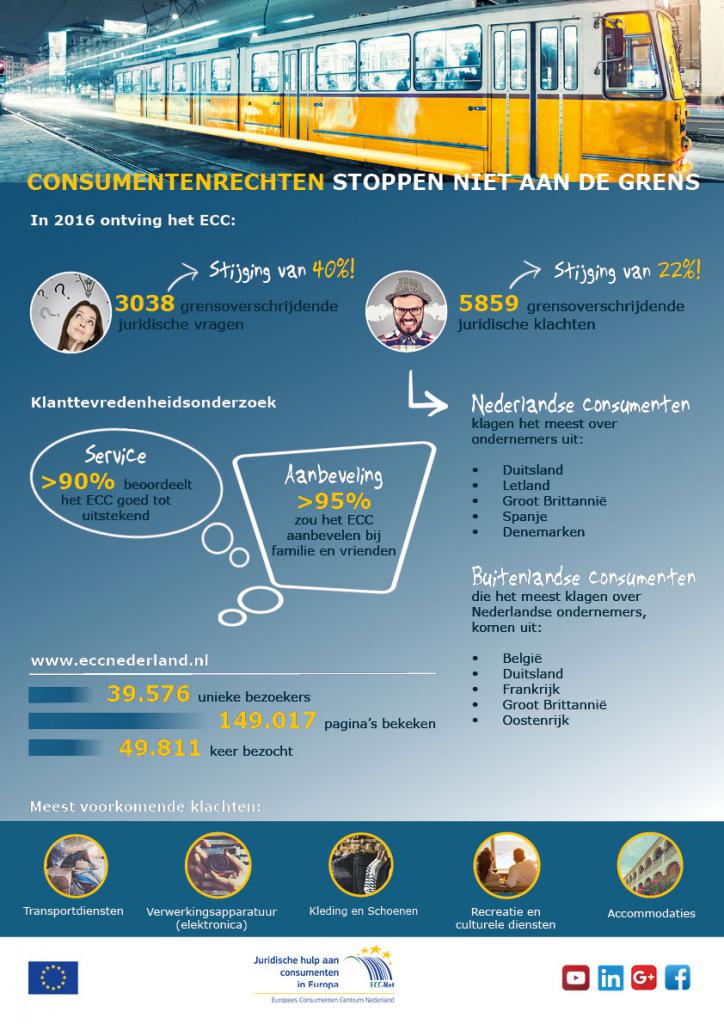 More and more people know how to find their way to the European Consumer Centre (ECC). In 2016 the ECC helped out a record number of people with solving their cross-border disputes. The annual results of 2016 show this.