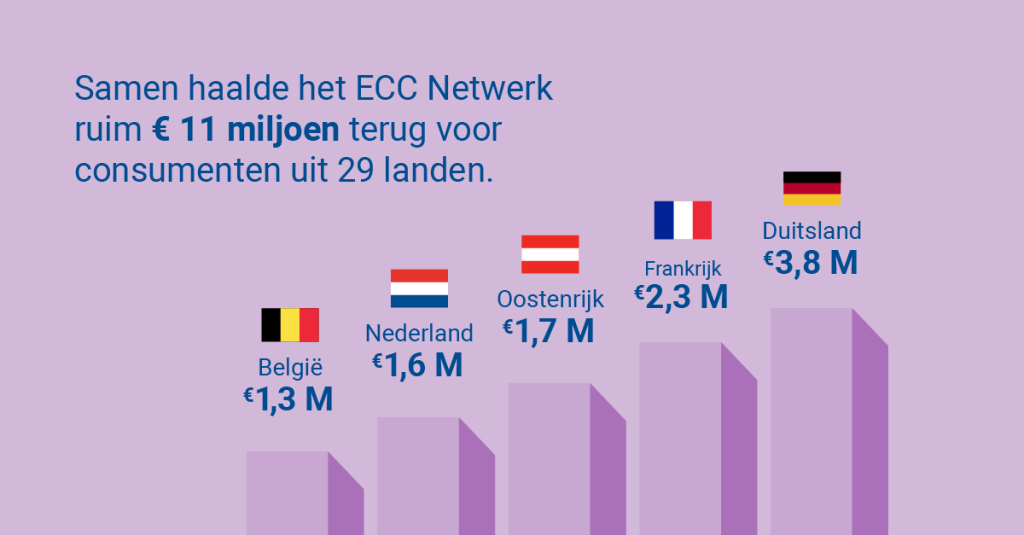 Het ECC blikt terug op een succesvol jaar. Ons team van zeven juristen hielp ruim 12.000 consumenten met gratis advies en hulp om problemen in het buitenland op te lossen. Benieuwd naar de hoogtepunten? Bekijk het verslag hieronder.